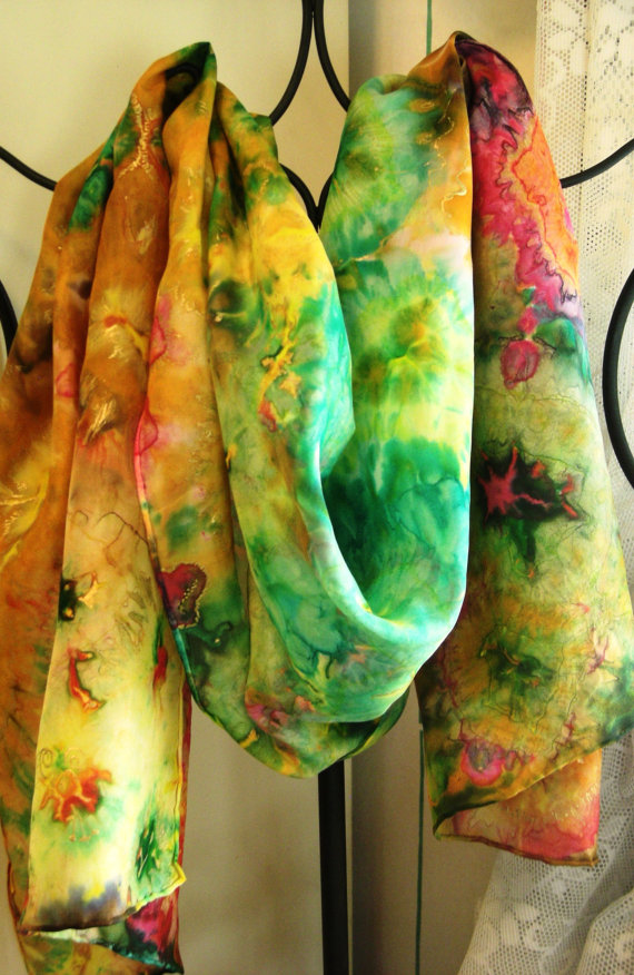 Another fun thing i love to do is to use rubbing alcohol rather than water to dilute my dye. It is a little secret- the colors are more vibrant, and the silk dries faster. Rubbing alcohol also causes the dye to run differently and break in unusual ways. i just love the results and can hardly wait to post photos.