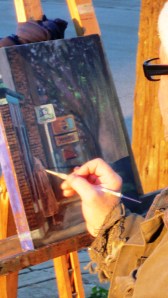 I mentioned recently stopping at Cosmic Bobbins to restock. While we were unloading our car i looked down the street to find a man sitting comfortably at an easel painting a scene. I crossed the street to see what he was painting and was amazed how he was eager to share his work… i think you will enjoy it too.