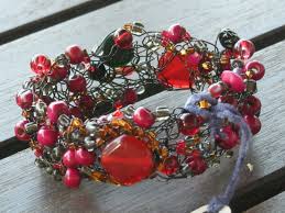 The “official method” for involving beads in wire crochet involves stringing all of the beads on the wire first, then begin to crochet, grabbing a bead with a stitch. This process creates a loose, wire mesh feel. While i must say i have done some bracelets and jewelry like this (pictured above) , I love density. I love maximized color, and i discovered a new technique that gives me the crochet, and the beads, but in dense pattern. I crochet a wire frame, then with the same wire i begin gathering the beads and embroidering them on to the wire frame. The results can be amazing.
