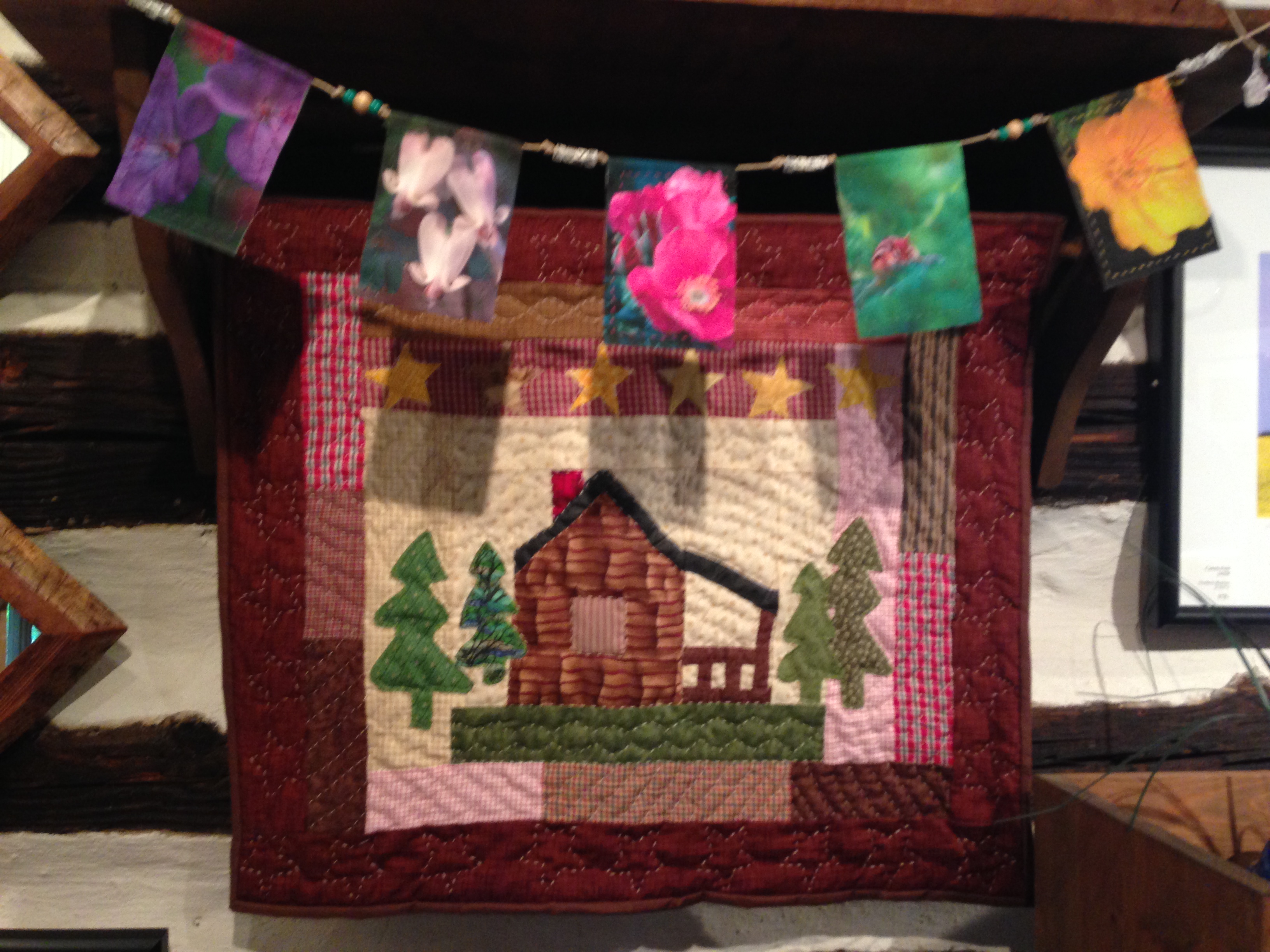The beautiful quilting of Lucille Seskes, accompanied by the photo on fiber banners by Diane Seskes, gallery owner