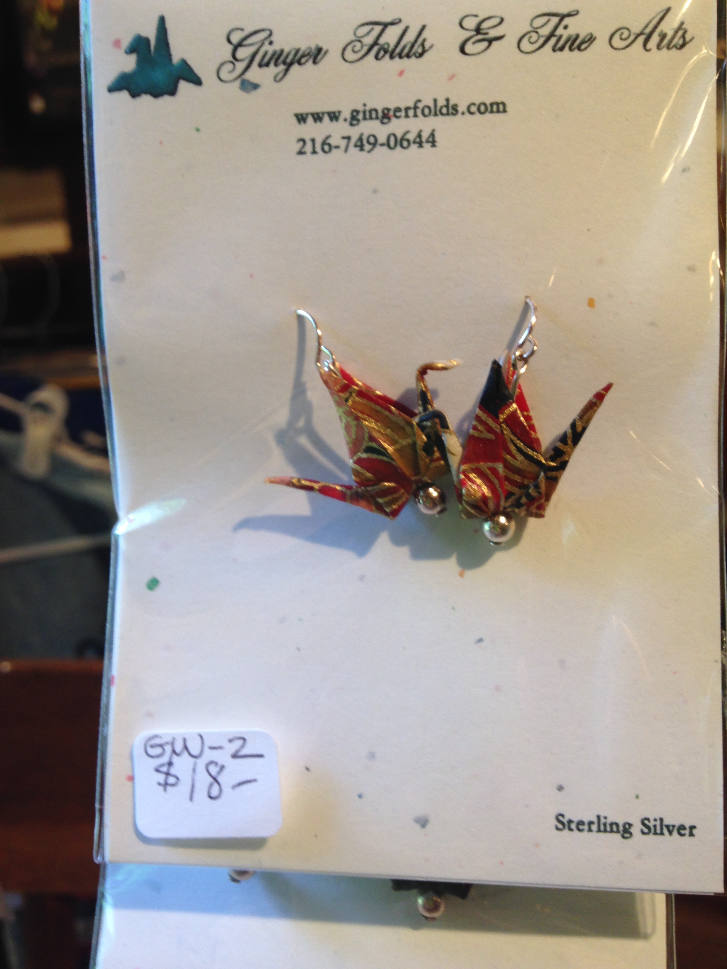 The intracate origami folded earrings by Ginger Wankewycz