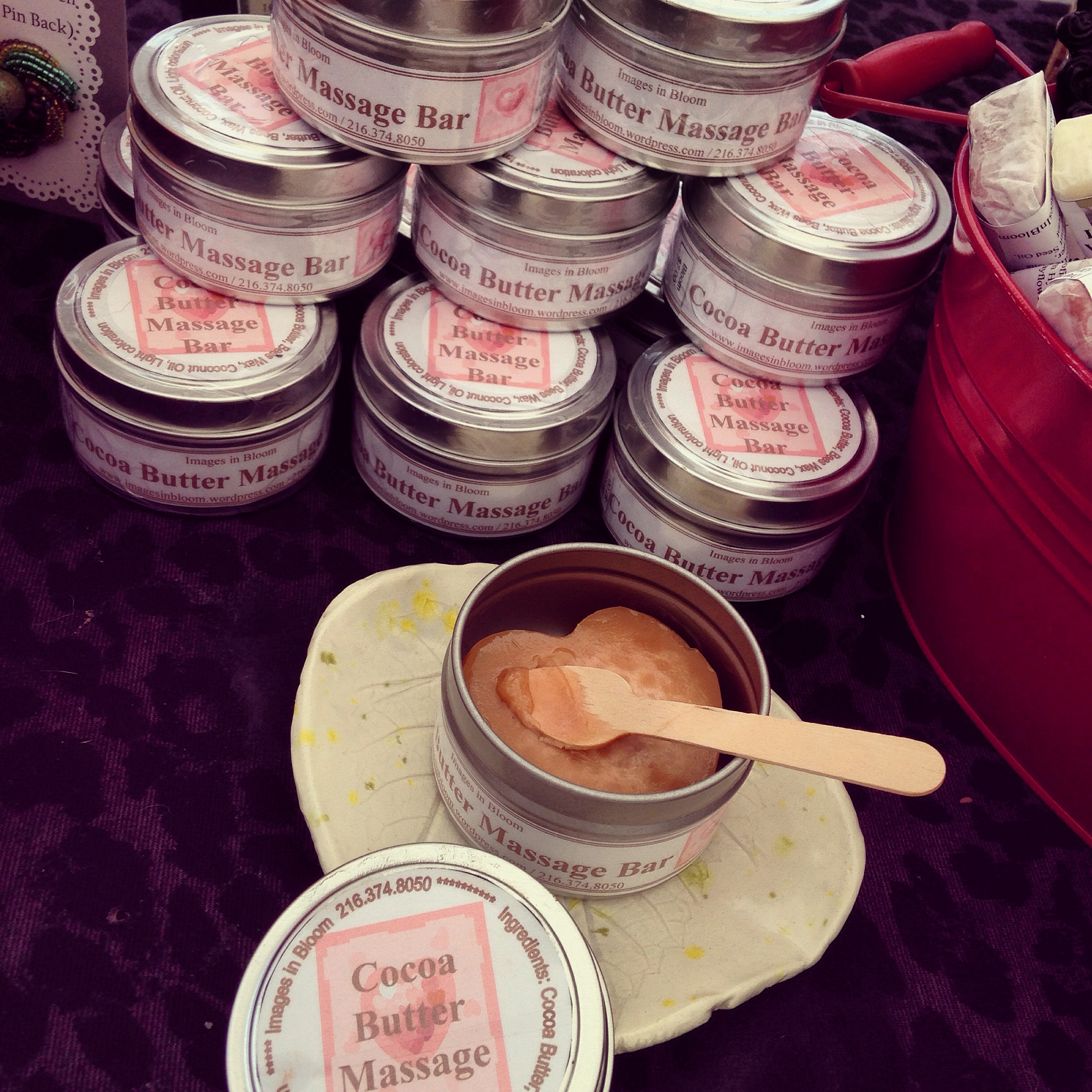 not the smartest idea... coco butter massage bars that melt at 76 degrees.... it was looking more like butterscotch pudding by the end of the fest because it was in the high 80s all day.