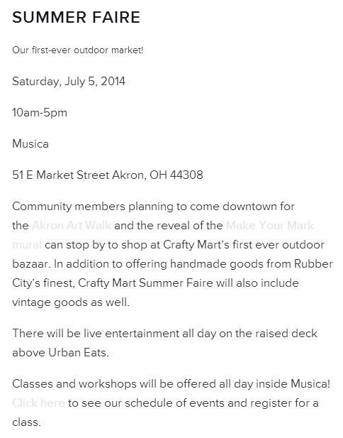 We are thrilled to announce that we will be at Crafty Mart’s Summer Faire on Saturday, July 5th from 10a to 5pm. We are fully stocked with soap, shaving products, scrubs, and so much more. For the summer we have a limited edition of summer soaps – we are adding more fun things to our soap rack…. And we are really excited to forray into Akron.