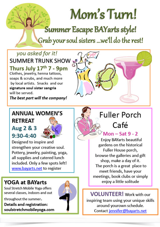 BayArts has so many amazing things happening… we wanted to invite you to stop out for the Summer Trunk Show tomorrow night. We are thrilled to be invited to participate in the trunk show, bringing our wonderful line of soaps, scrubs, silk and funky wire jewelry. Its always a lovely evening… and BayArts is located on lake road in the huntington reservation of the Cleveland Metroparks system.