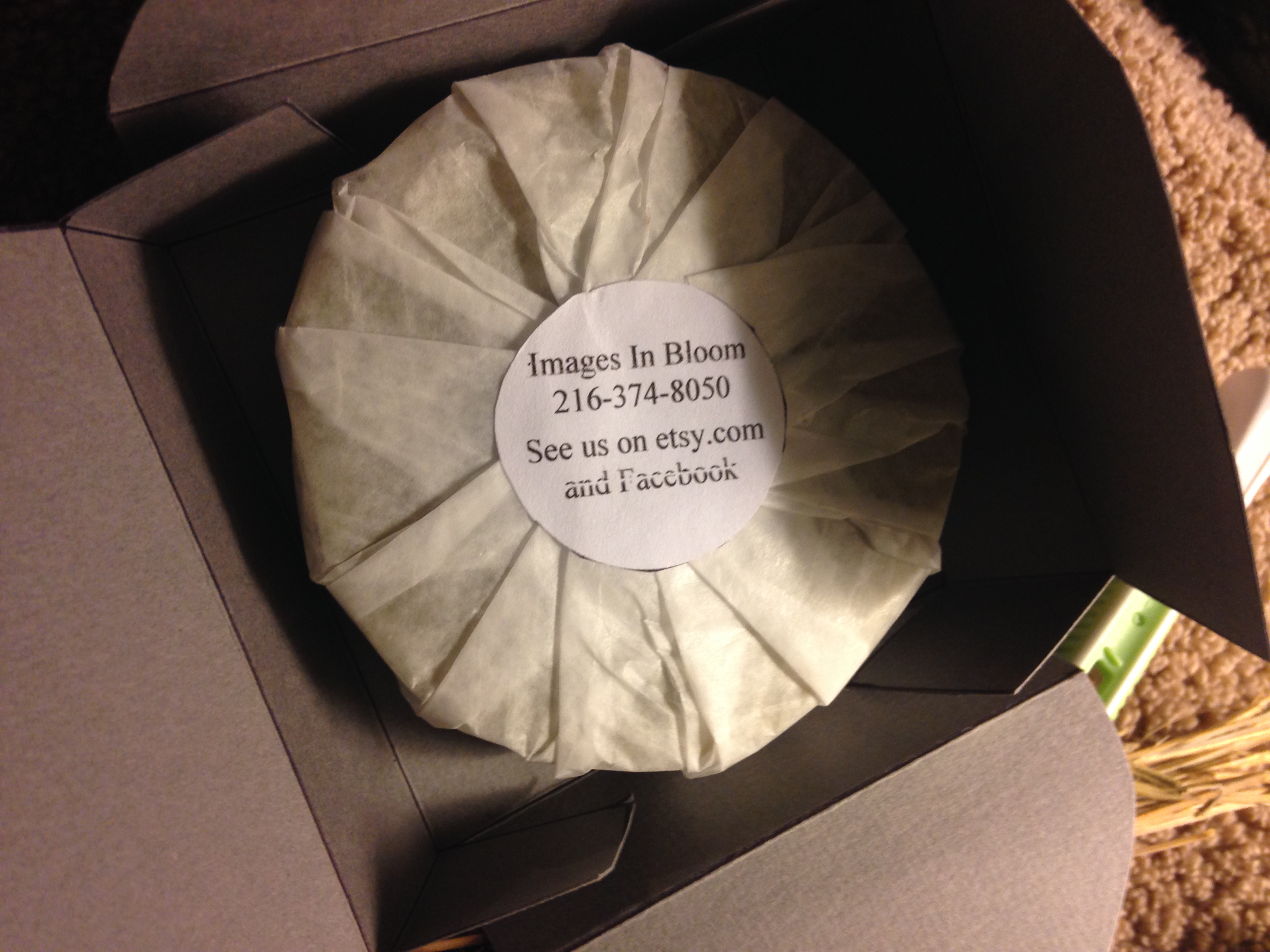 And the perfume is packaged to match the simple elegance… Simple label on the tin with a tamper proof fold over, then the entire tin wrapped in attractive scrapbook paper, and sealed with another copy of the label. 1 oz of solid perfume for $5.00 is quite a great deal.