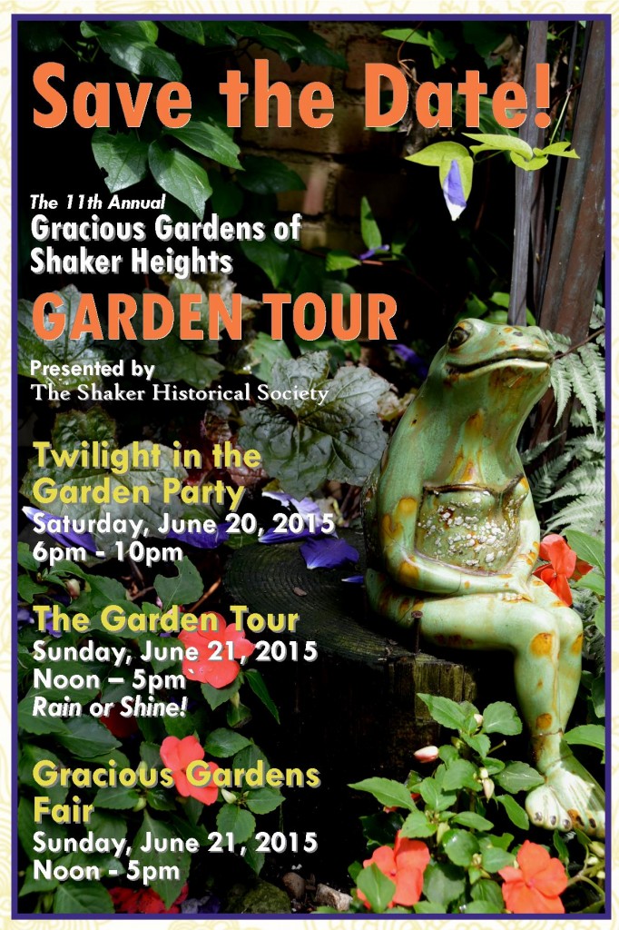 Sunday, June 21st we have been invited back to the Shaker Heights Historical Society Garden Fair, held in conjunction with the annual Garden Tour. We will be set up in the sprawling front lawn of the Historical Society located at 16740 S Park Blvd in Shaker Heights. The Garden Fair is only one of the many amazing things the SHHS has planned for that weekend. We will be there from Noon to 5pm