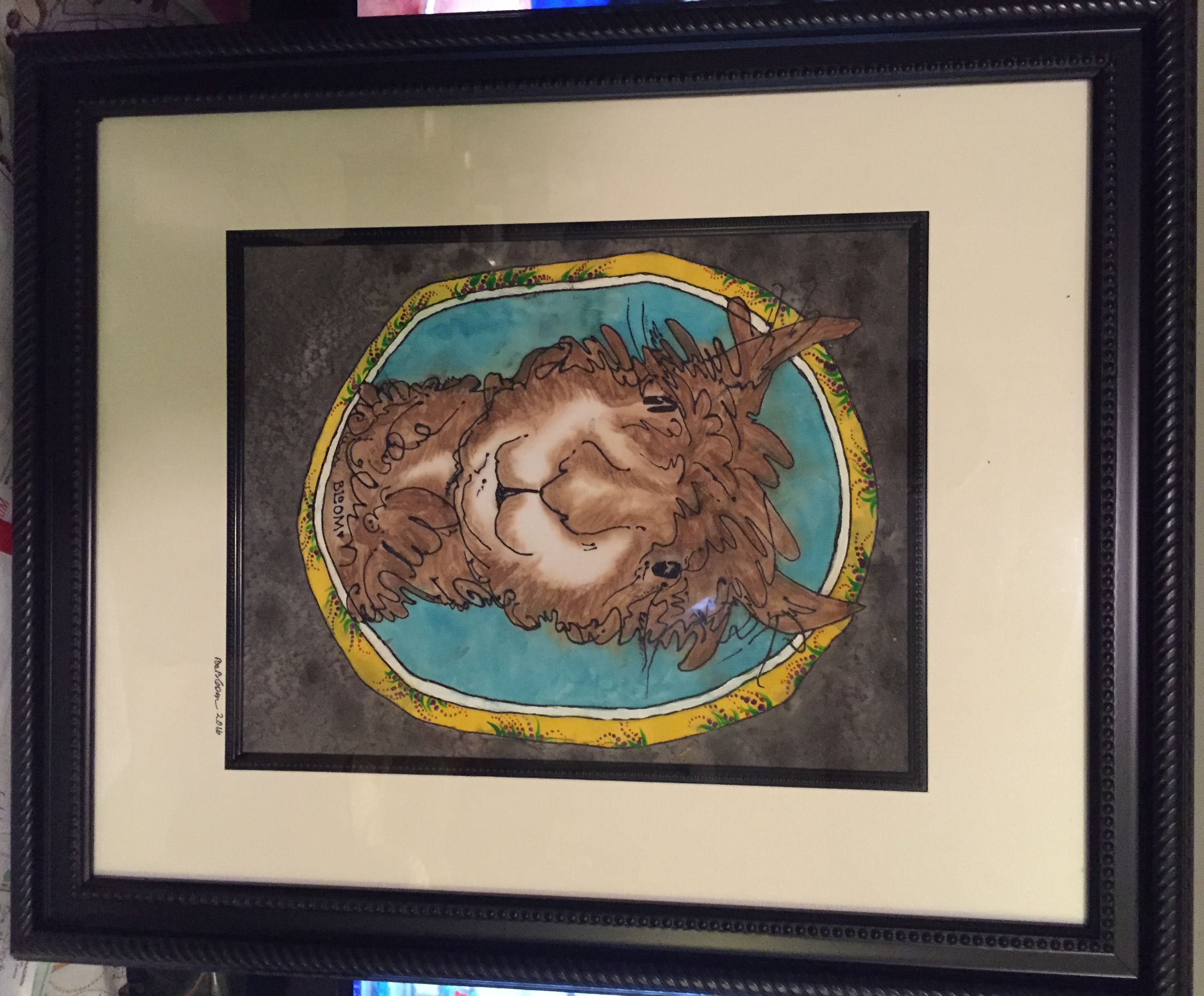 I took the completed silk painting with me to look at frames. Visited several places, and finally found a lovely black frame, white matting, and a small black feature edging on the interior o the mat. Alpaca seemed to find its home. Even the framer said yes, that is the one…. So i held my breath, carefully stretched and framed the piece, and sent photos to my client. She loved it. So excited to deliver it, her eyes lit up when she saw it. “But please don’t post anything until after the wedding, which is labor day weekend! I don’t want her seeing a preview, don’t want the surprise spoiled.”