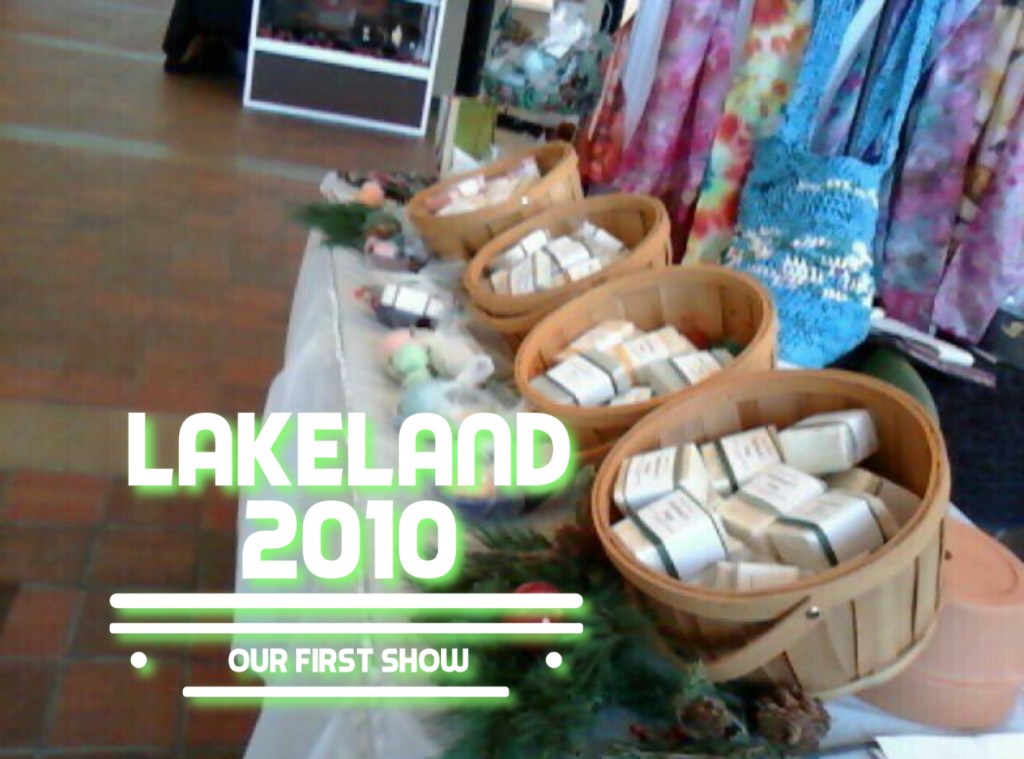 Our very first art shows used baskets or clay pots on tables so that you look down to view what is on the table. We learned a lot about merchandising, and how important it is to display products elevated so the eye can scan the available things. Our first rack was a curb side find that was a shelf-less book shelf. We found baskets that fit at an angle and could display 18 variety of our soap. Top baskets were for mini soap packets which we cut from trims of the soap. That came to an end when we began using more structured molds, and cutting to accuracy.