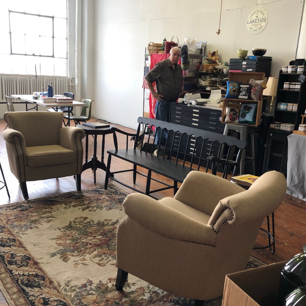 We love our space in the ArtCraft building… there is plenty of space for Steve to create his soap, to cure it, wrap it and shelving to stock it. And there is plenty of space for me to paint silk, and to have silk play days….