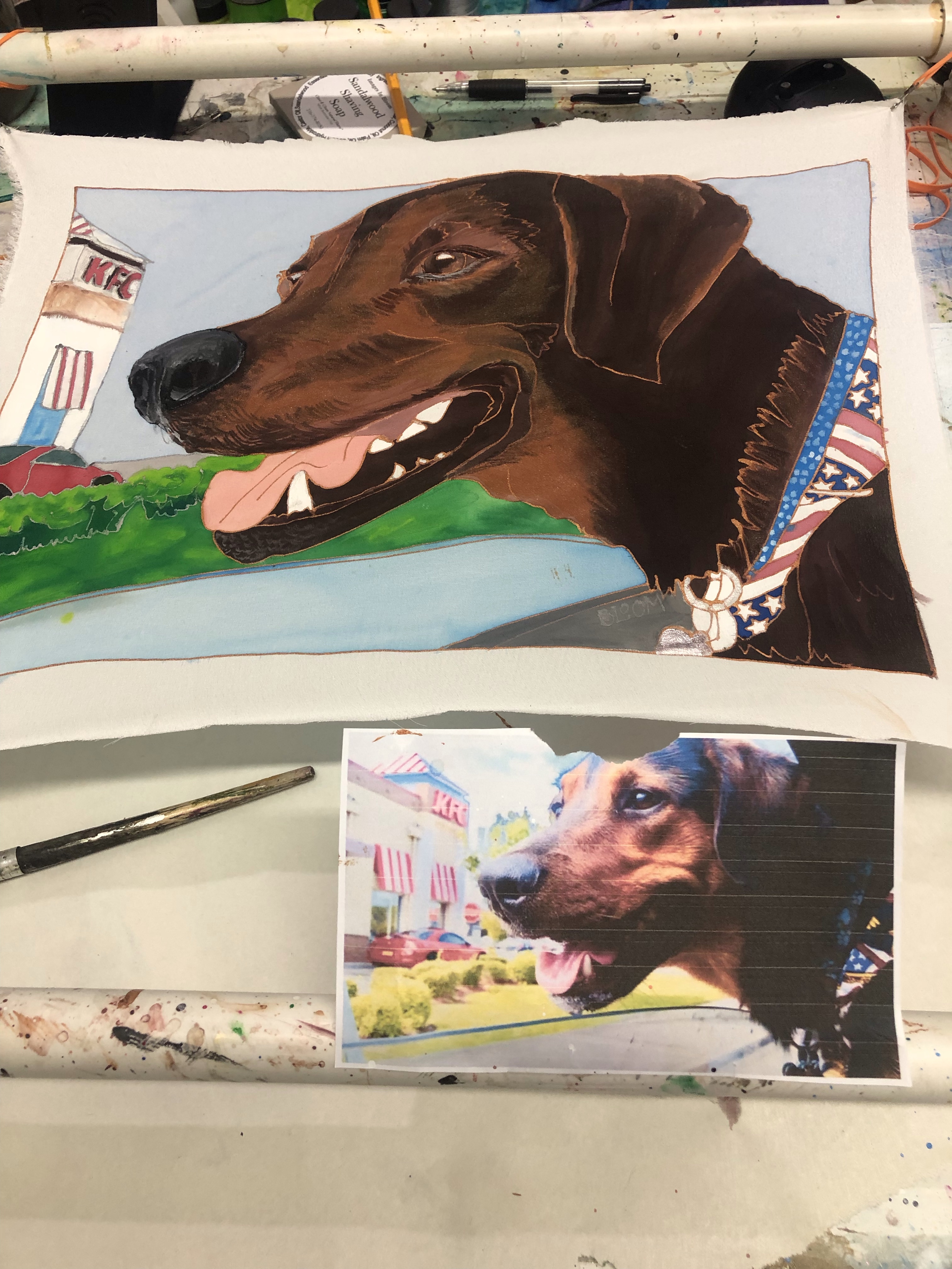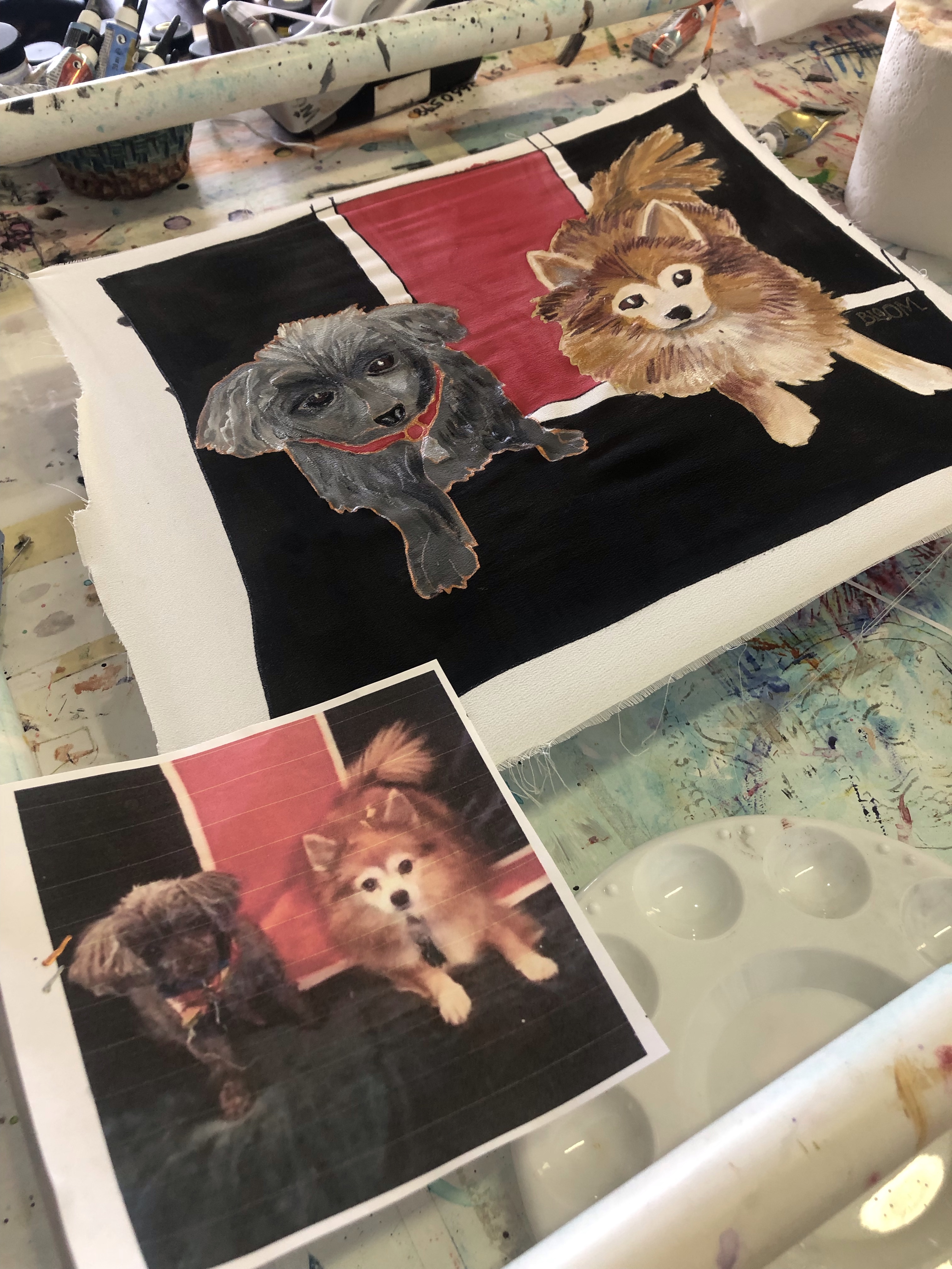 For a few years now I have traveled to various art shows advertising pet portraits on silk, and showed photos from my cell phone. Then I discovered mixbook, and just put together my first “look book” with examples of the commissions I have done. It arrives mid-March in time for show season to begin. I can hardly wait, but you can see it first by clicking on the link above. If you are interested in having a pet portrait commissioned please visit this link on my website.