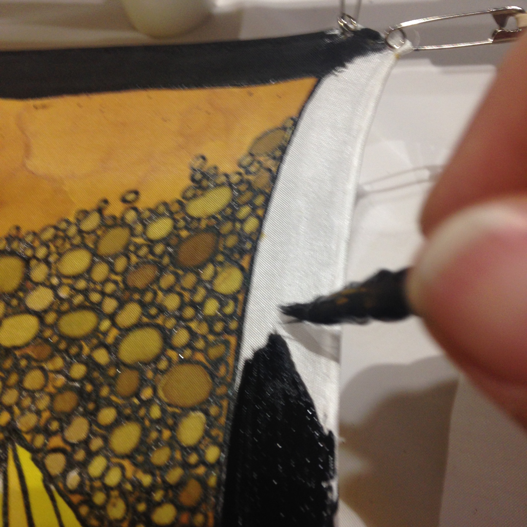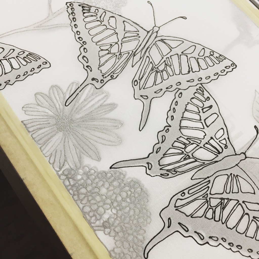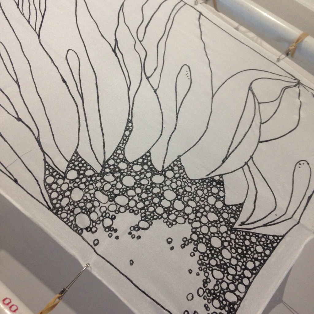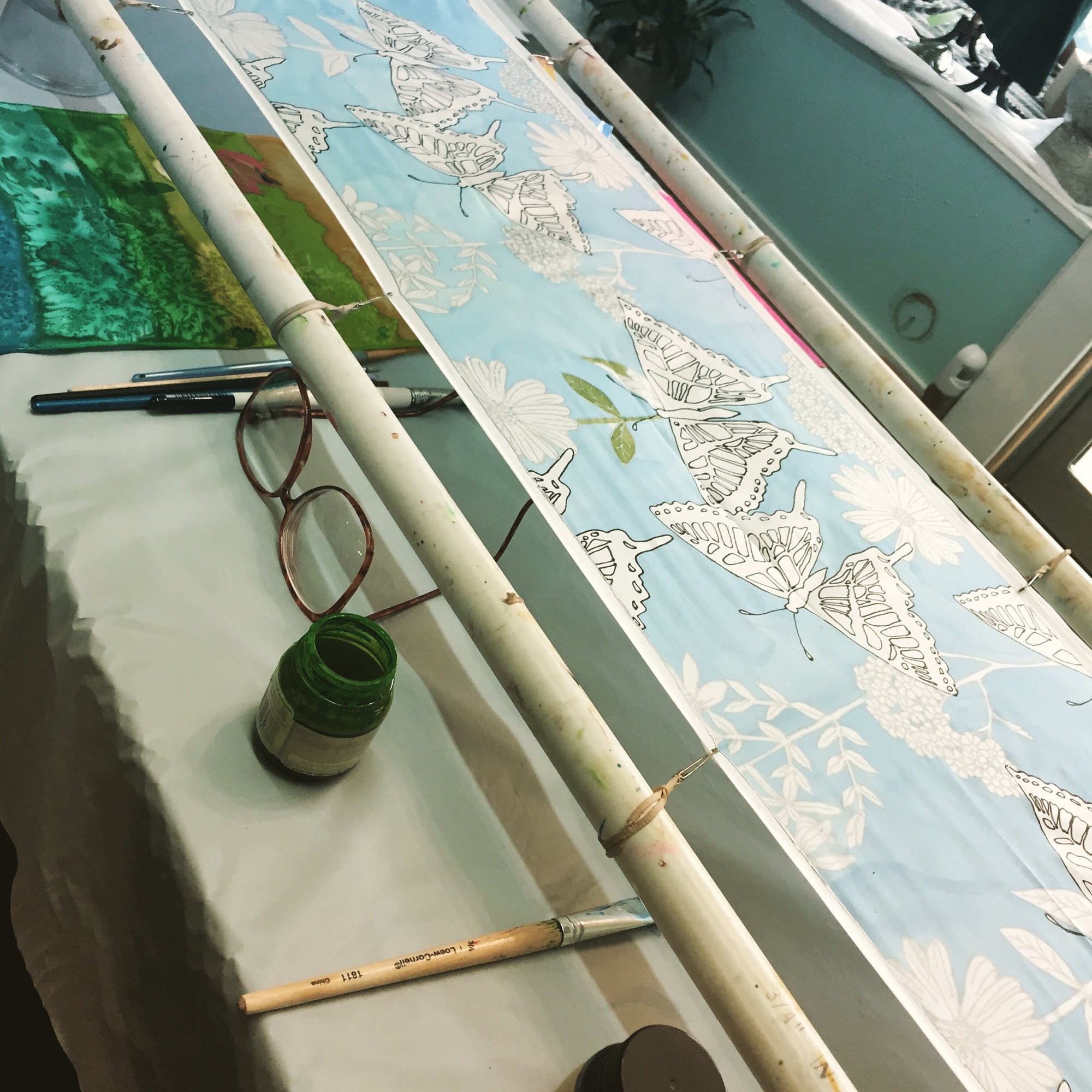 Trying to paint silk at home was tough…. having a 6 ft long frame seemed to only work best on the porch in the heat of summer. It was a phase… and soon the supplies were packed away in a box and i moved on to other things.