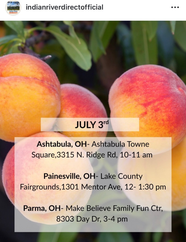 After that we are quiet until mid July. But so much more going on behind the scenes…. We have to go jewelweed picking to make more of our products to defeat poison ivy. We have a case of peaches coming to can up. (nothing like fresh southern peaches that smell so good even when they are green!!!) By the way have you heard of Indian River Direct, which is a scheduled truck that comes through ohio with fresh peaches, blueberries and pecans. The schedule is for Indiana/Ohio/Kentucky and i think also Wisconsin/Illinois. If they are coming anywhere near you and you love peaches dont miss it. Click on the picture for link to the schedule.