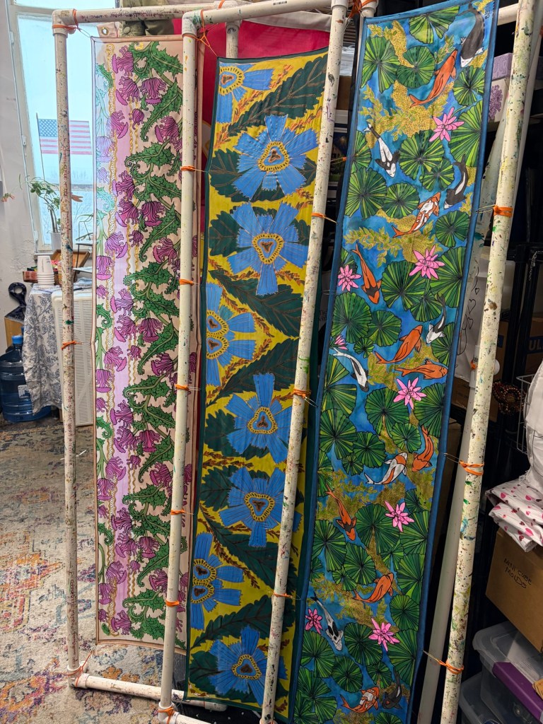 I have just completed 2 scarves in the peacock pattern, and another copy of the koi pond scarf.